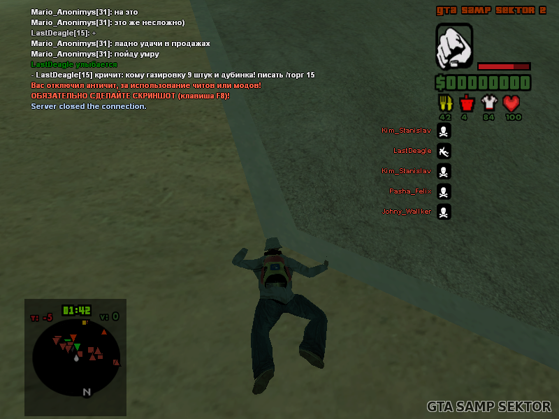 | Форум GTA SAMP SEKTOR 2 Форум GTA SA:MP SEKTOR-2 Вопросы Немогу зайти.... (....) |