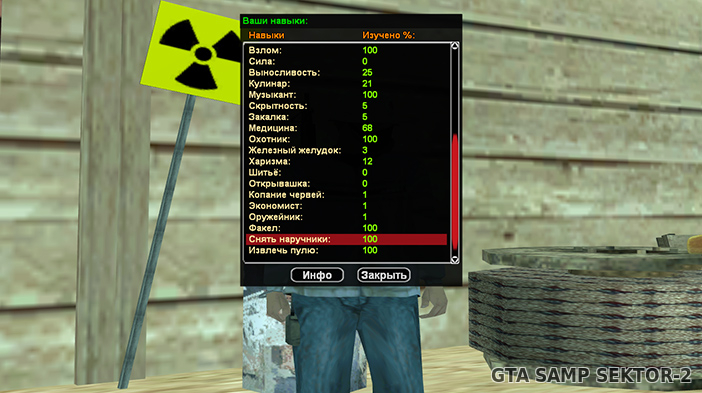 - Прогресс навыка можно увидеть в меню, там же можно прочитать подсказку, если кликнуть на навык.
