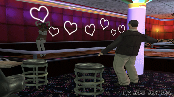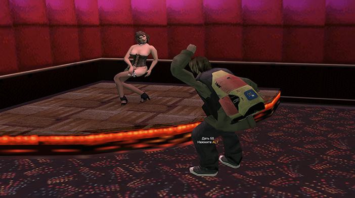 - С одной из танцовщиц можно взаимодействовать - подкиньте ей денег и она станцует для вас! Танцы и комментарии девушки меняются рандомно, а ваш персонаж повысит настроение и возбуждение.