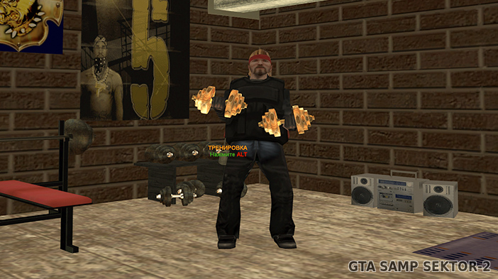 - Ещё тут можно выпустить пар и побить грушу - она будет двигаться от ударов.